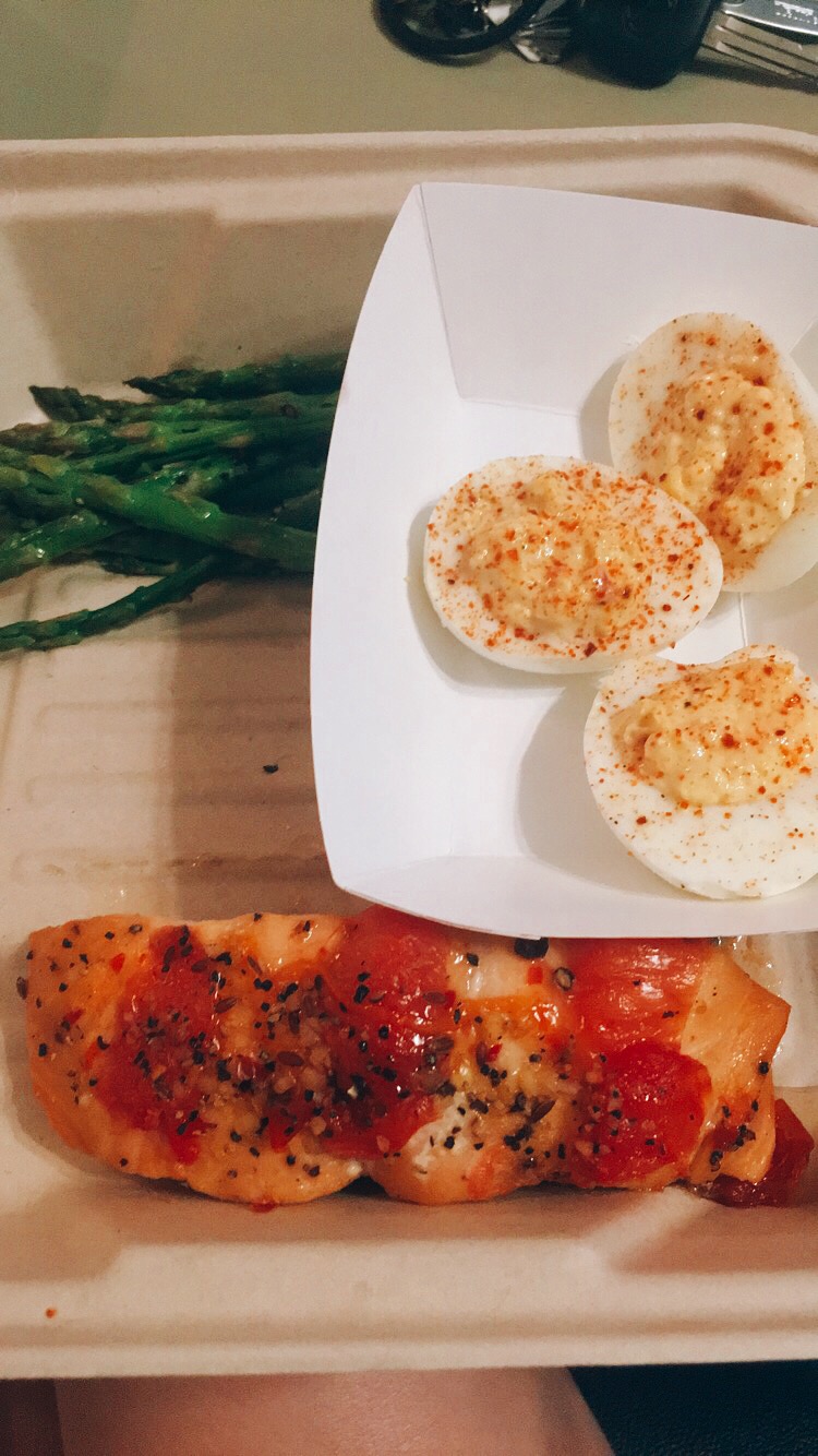 - Tried out Go Go Gourmet in North Campus - on the same day as Pho Dan. I had salmon with grapefruit topping, deviled eggs, and asparagus. The deviled eggs were sooo delicious, and I had cravings for them for a few days afterward.