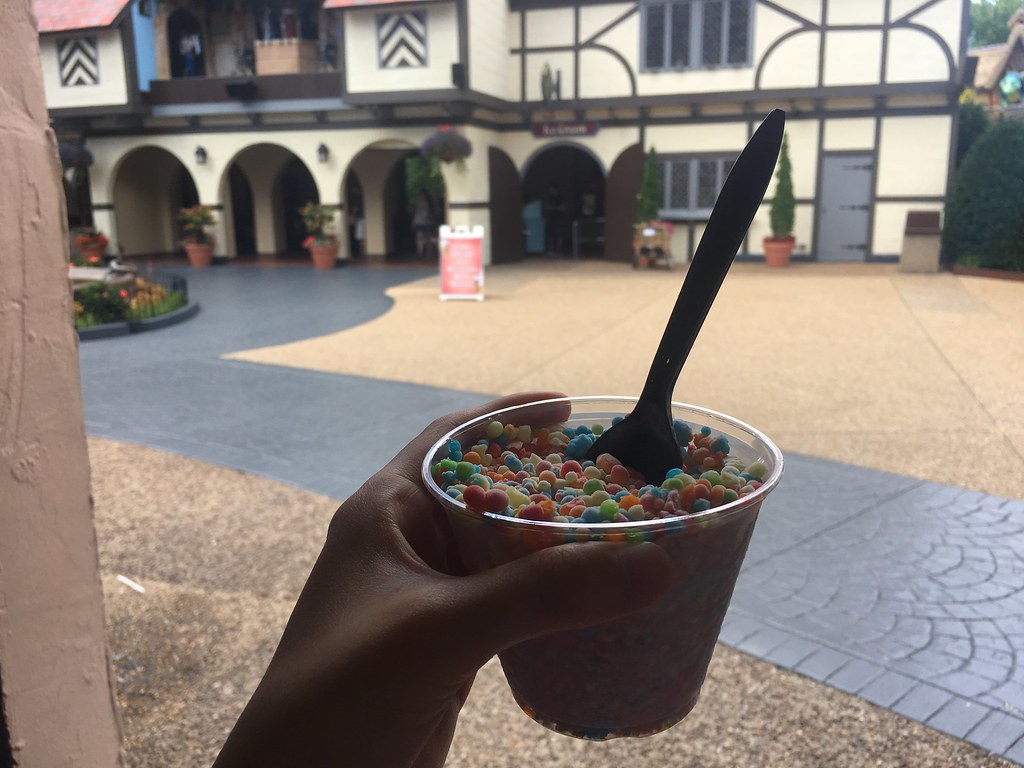 After eating lunch, I definitely didn't want to tackle any more roller coasters, so our group split up. My group went on the Skyride and a boat ride, which were boring but didn't include drops and was thus perfectly fine in my books. Afterward, we feasted on more food - funnel cake for the others and Dippin' Dots for me. On the bus ride home, I fell asleep but kept on jolting awake whenever we were even slightly moving downhill. I'm telling you, I was, and might still be, traumatized.