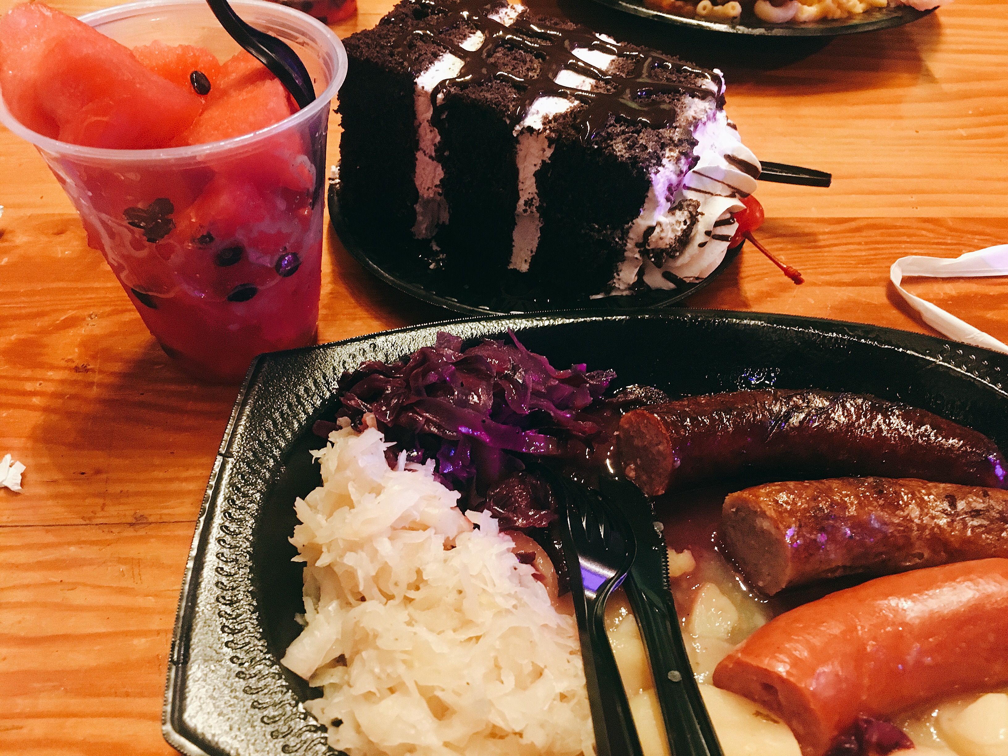 My lunch reaffirmed that red cabbage is really not my thing. I also didn't eat much of that cake because my stomach was so upset at me for going on those roller coasters.